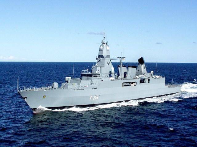 Gruppenfoto auf dem Achterdeck der Fregatte „Sachsen“